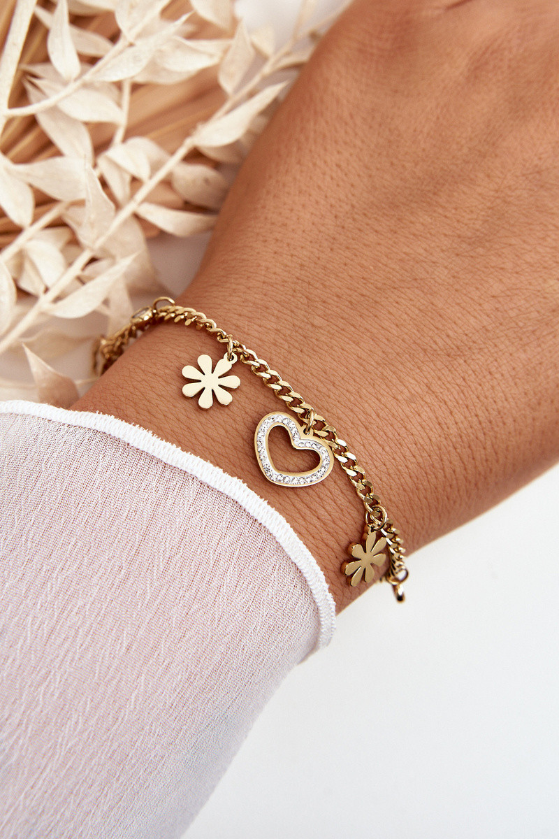 In de mode Armband Met Bloemen en Hart gouden kleur