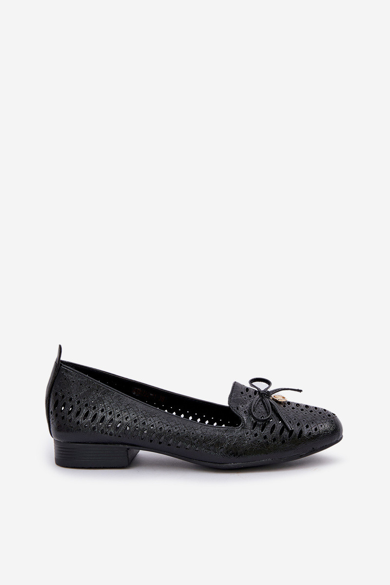 Ażuurlijke ballerina's met strikken van kunstleer in zwart Amepitrea met lak-effect