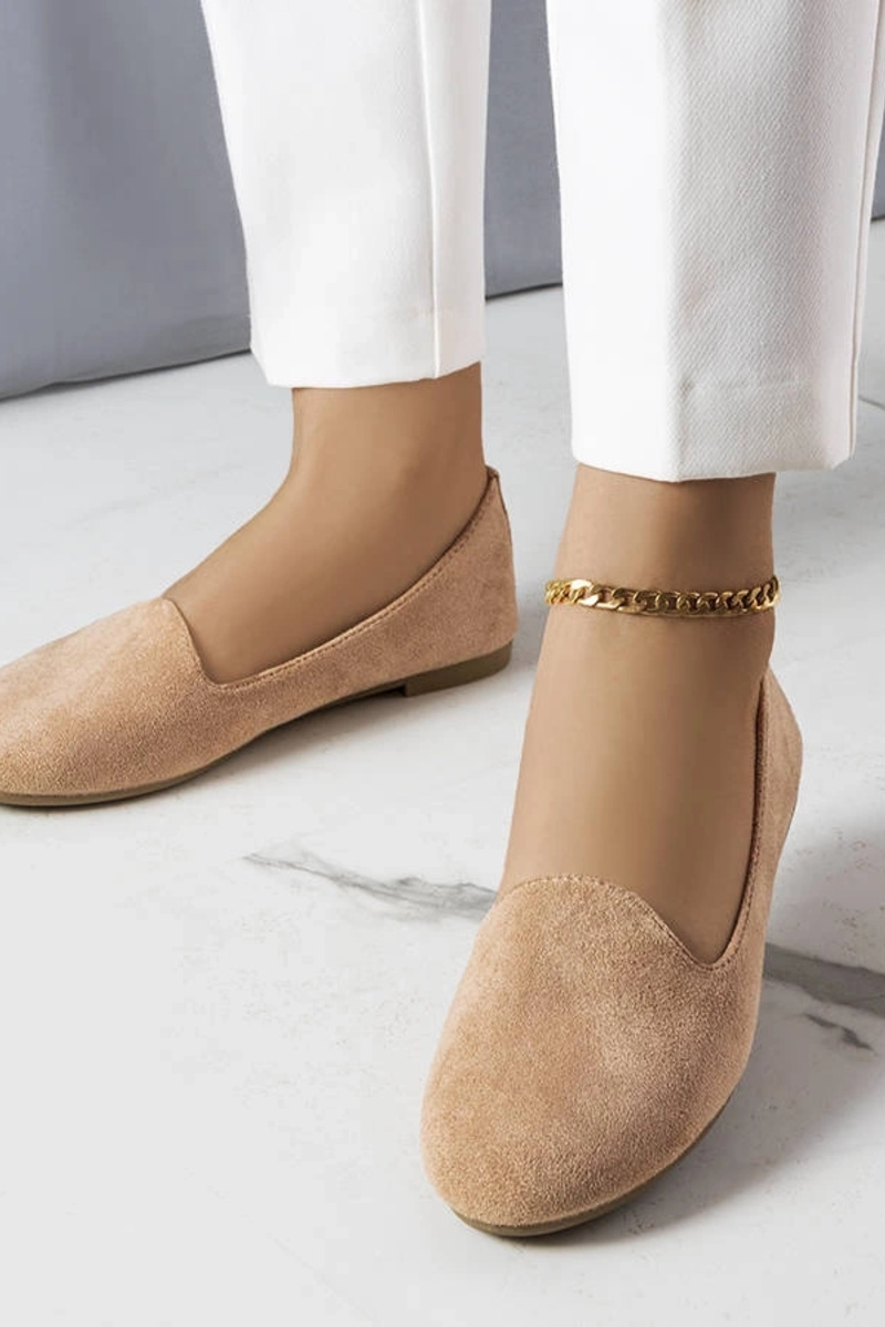 Zandkleurige schoenen van kunstsuède ballet Marion