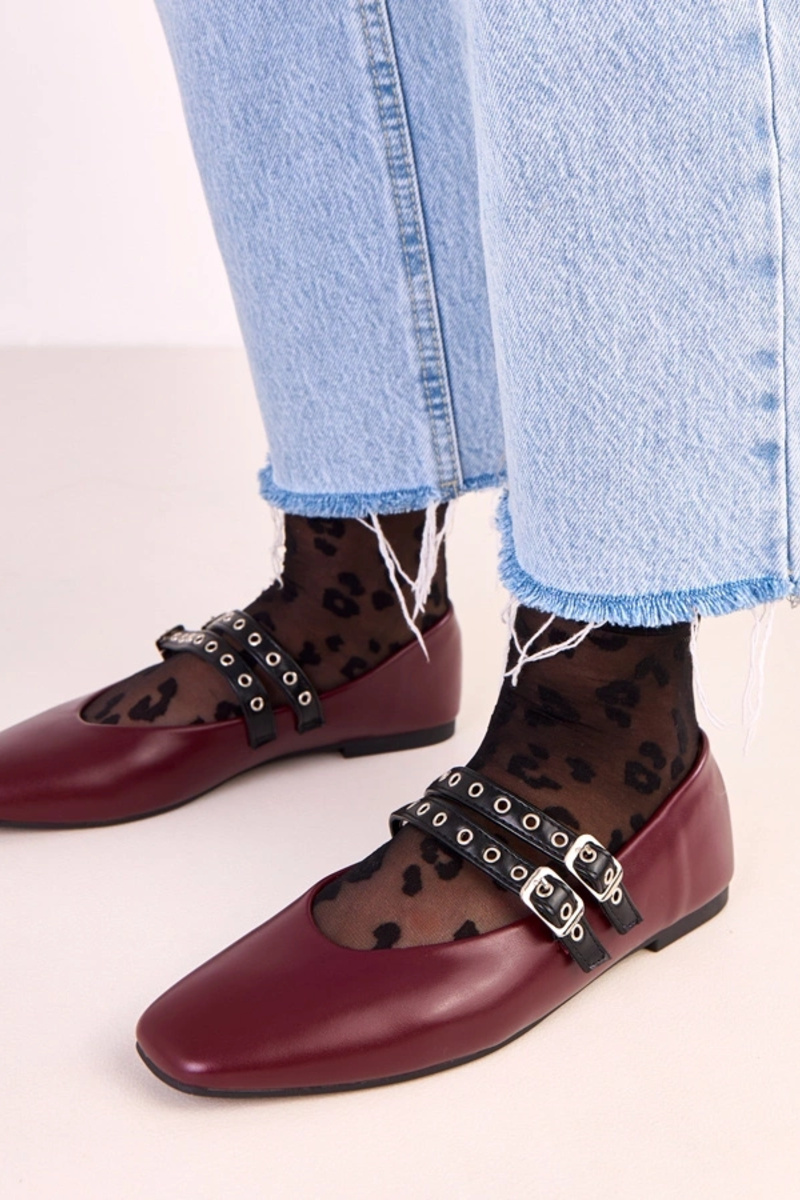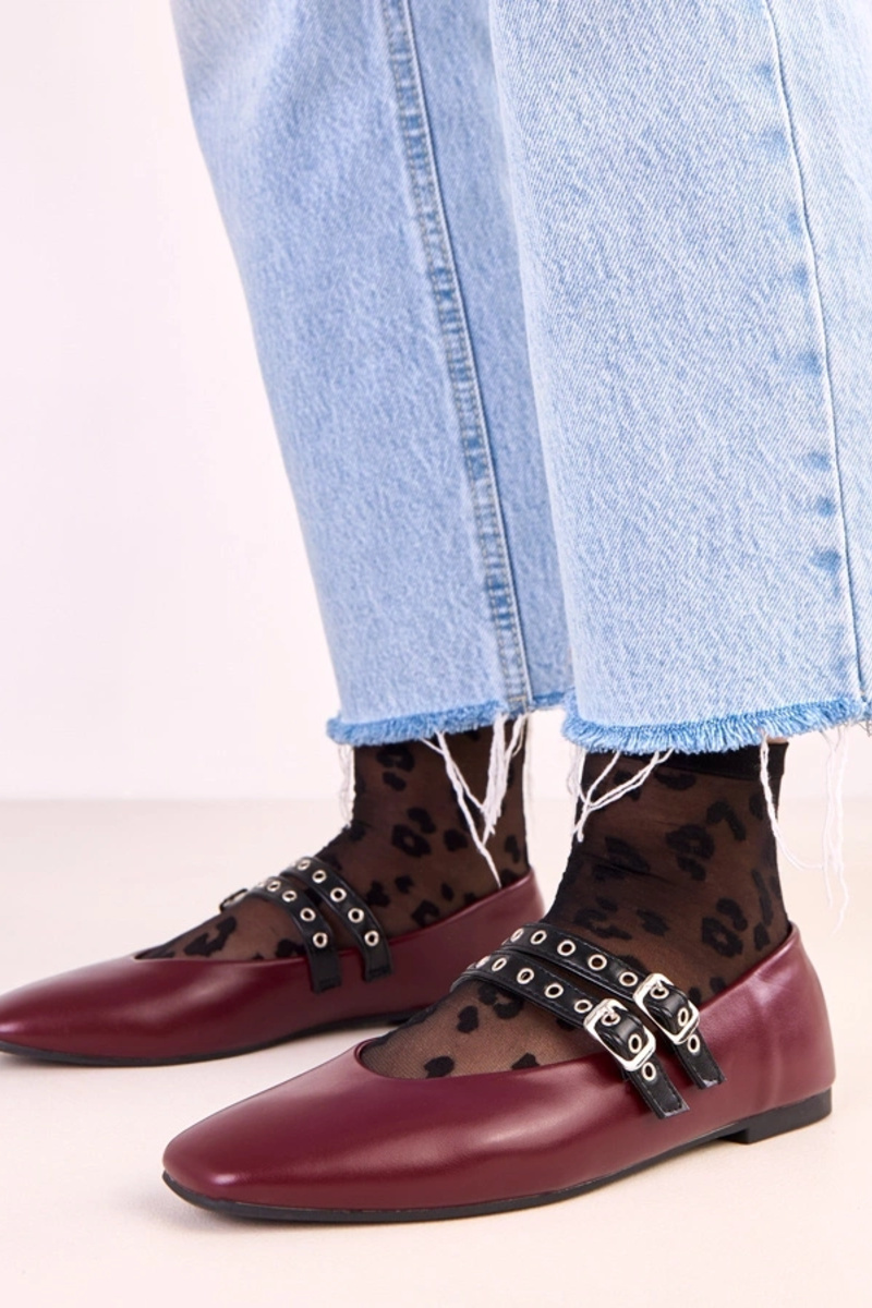 Donkerrode Alfira ballerina's met vierkante neus en gespen