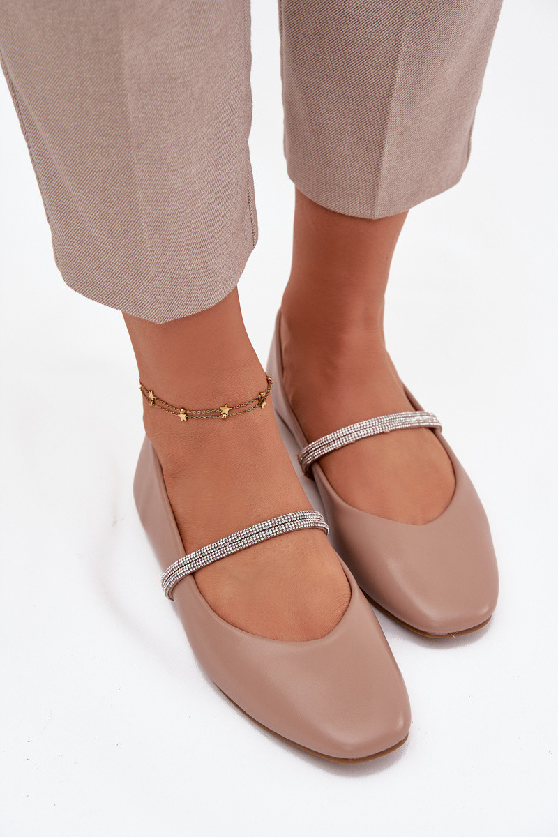 Ilirene vrouwelijke ballerina's met glanzende bandjes zandkleur