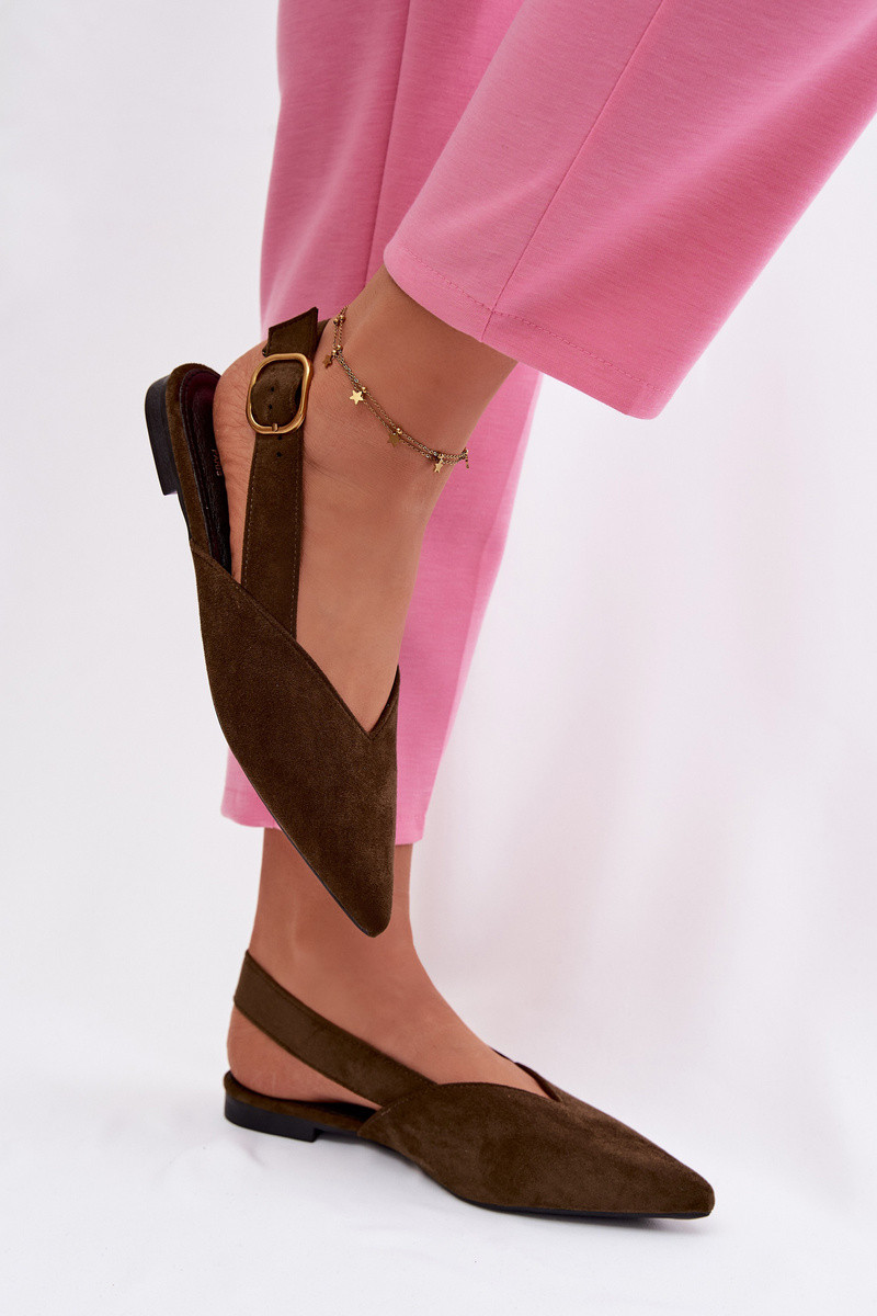 Ballerina's met gouden gespen van kunstsuède, groene kleur Palerra
