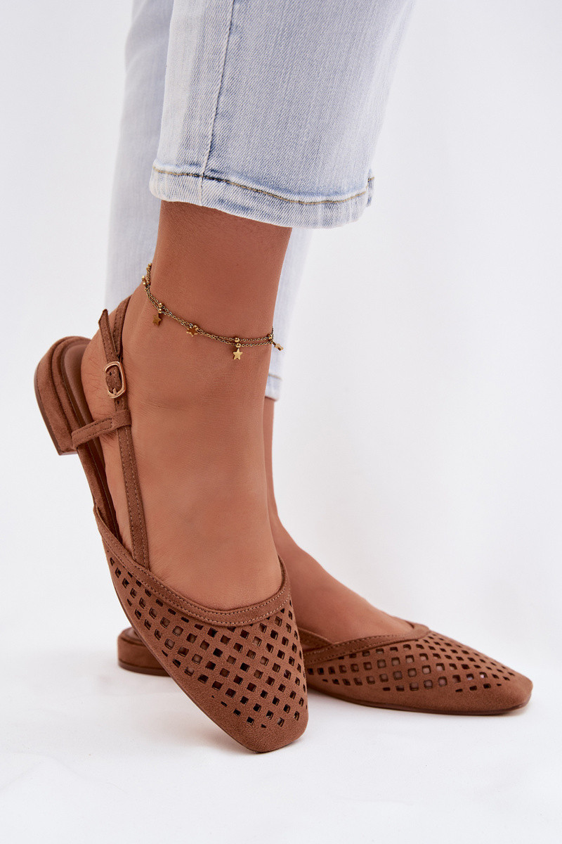 Ażurowe ballerina's van kunstsuède in bruin Farivelle