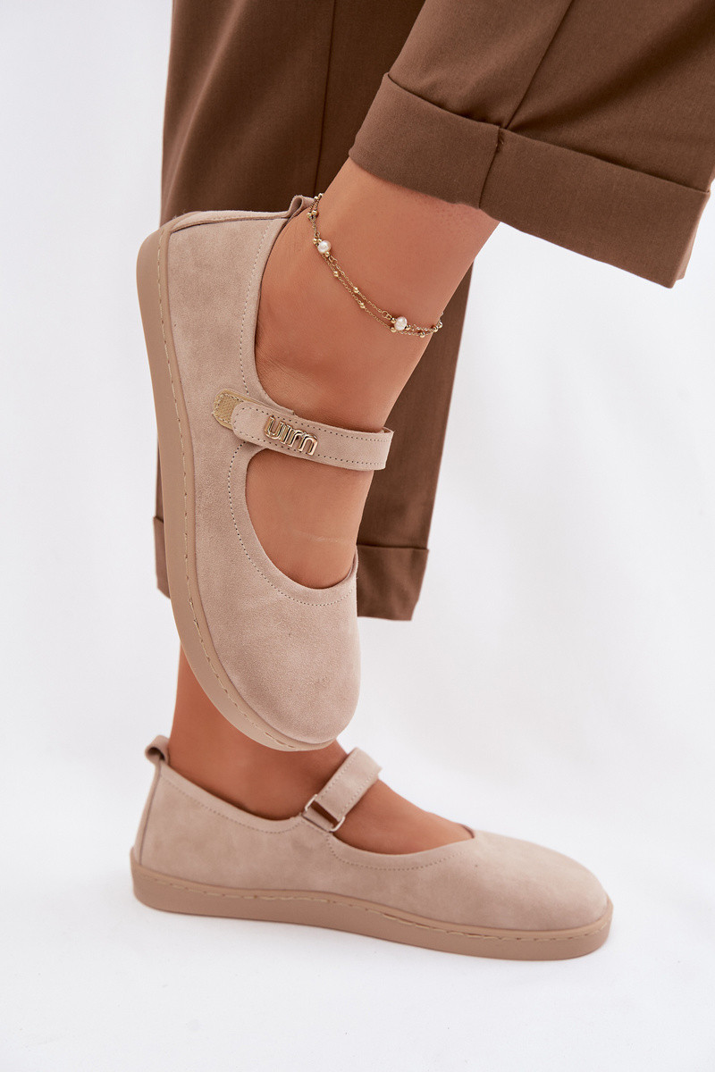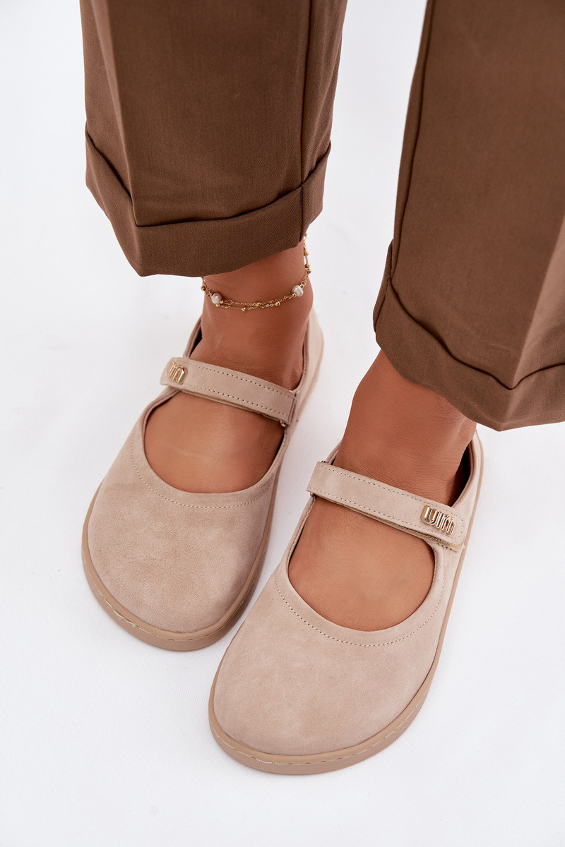Leren suède ballerina's Barefoot met bandjes Zazoo 10206 zandkleur