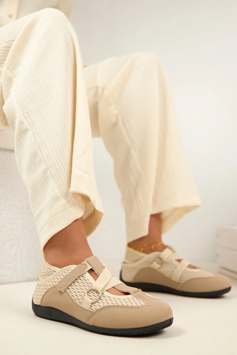 Zandkleurige sportieve ballerina's Vesper