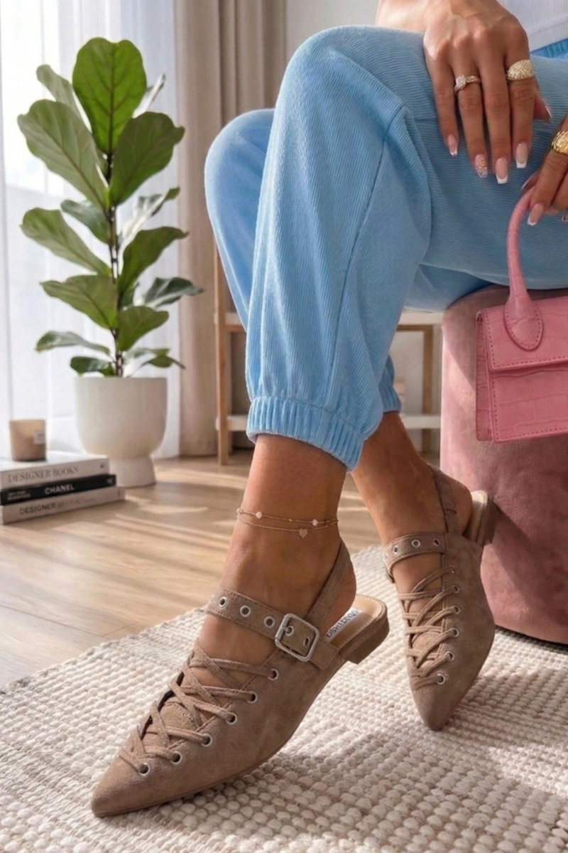 Karamelkleurige ballerina's met open...