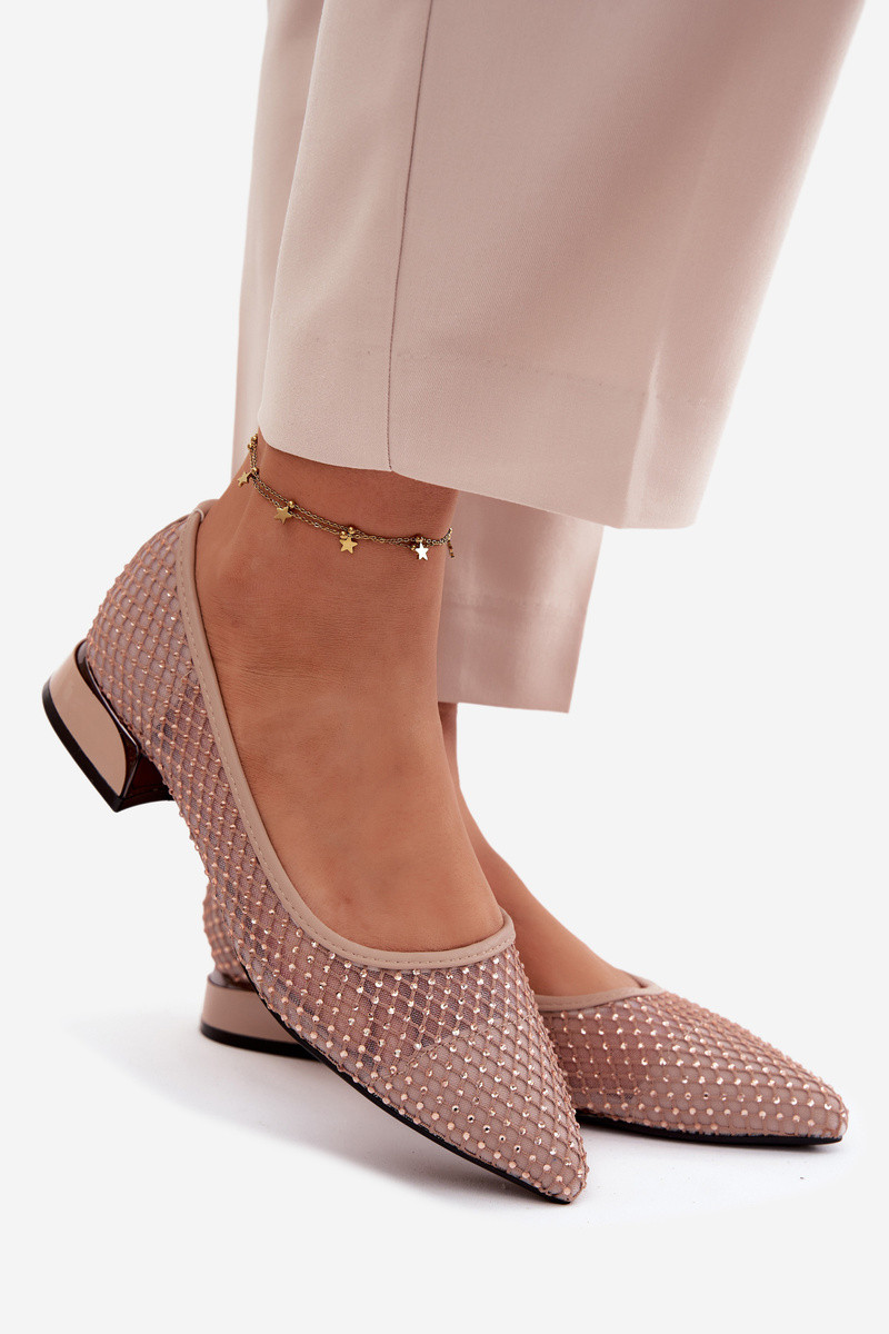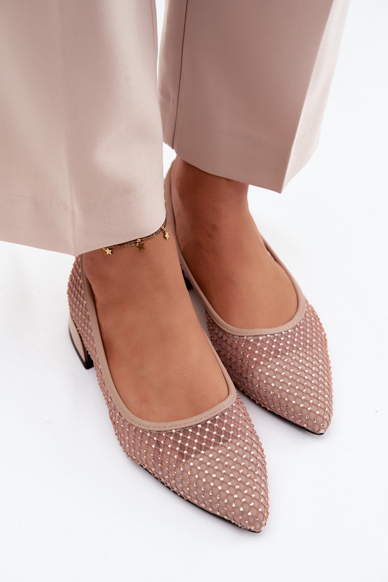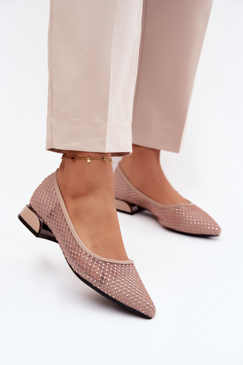Beige ballerina's met lage hak en netdecoratie Vinceza 62294