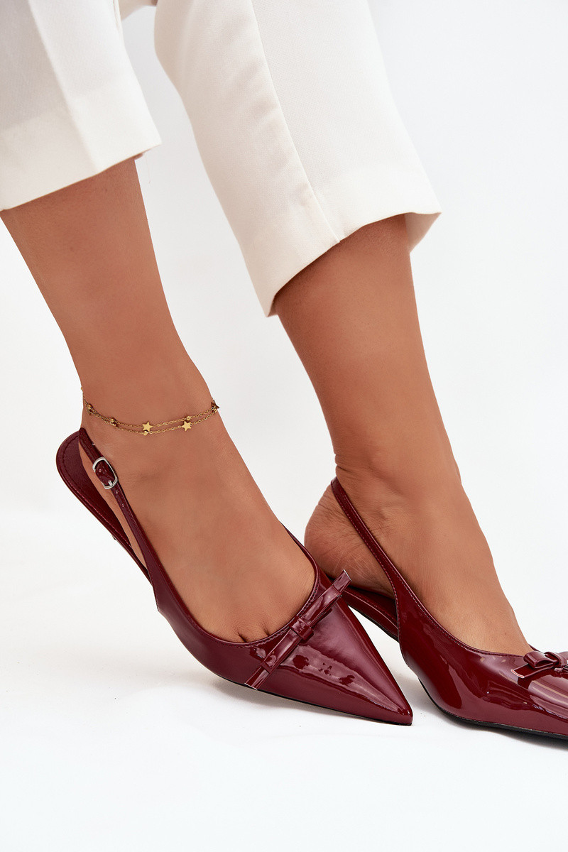 Lakkende schoenen met dunne hakken en strikken in bordeaux kleur Olvena
