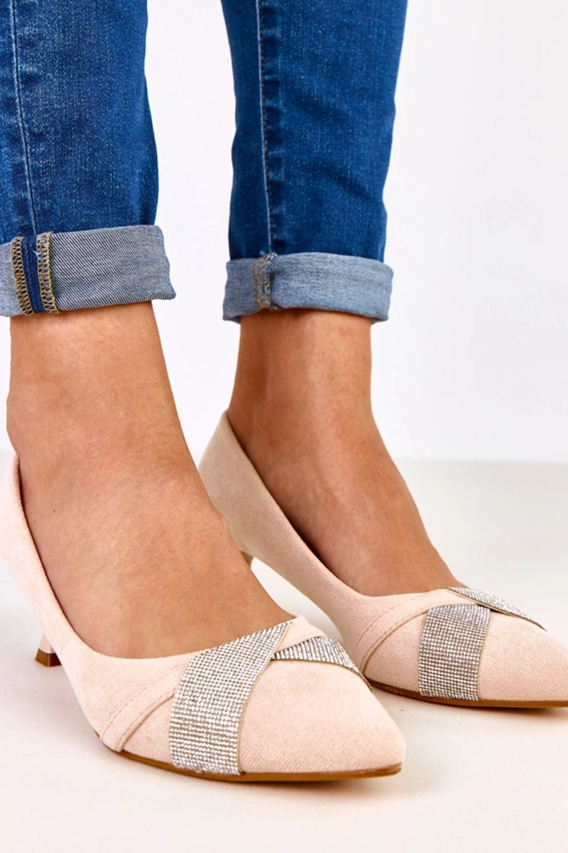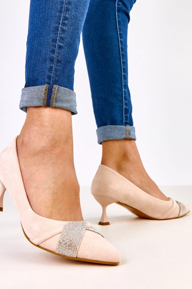 Zandkleurige hoge hakken met een lage hak en zirconia's, Tajlana
