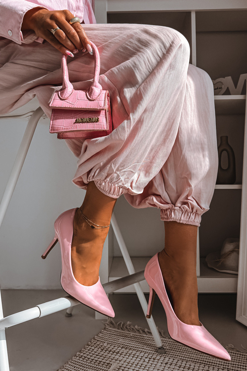 Klassieke lakleren hoge hakken in roze kunstleer Odira