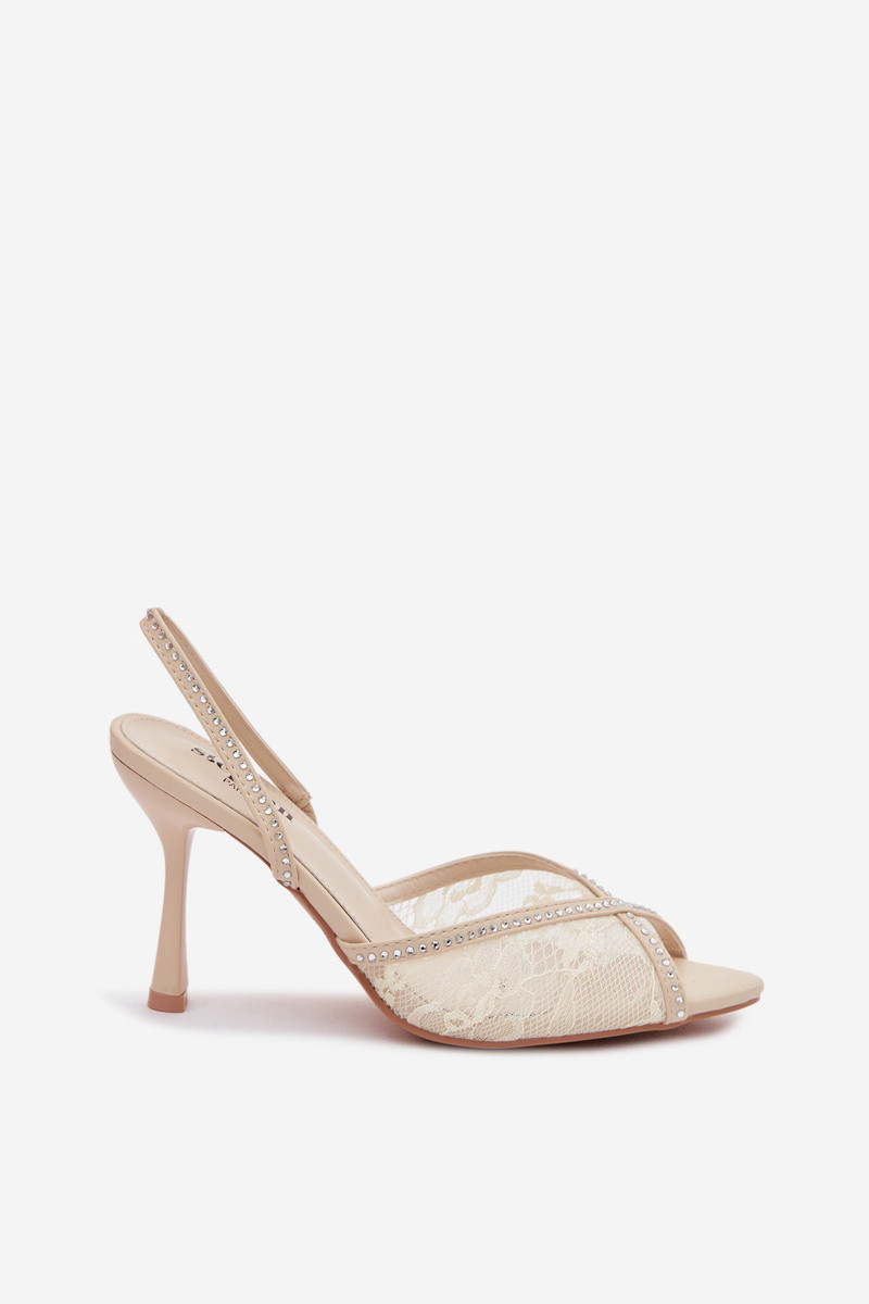 Dames sandalen met dunne hakken met kant I Zdobieniem beige Melivelle