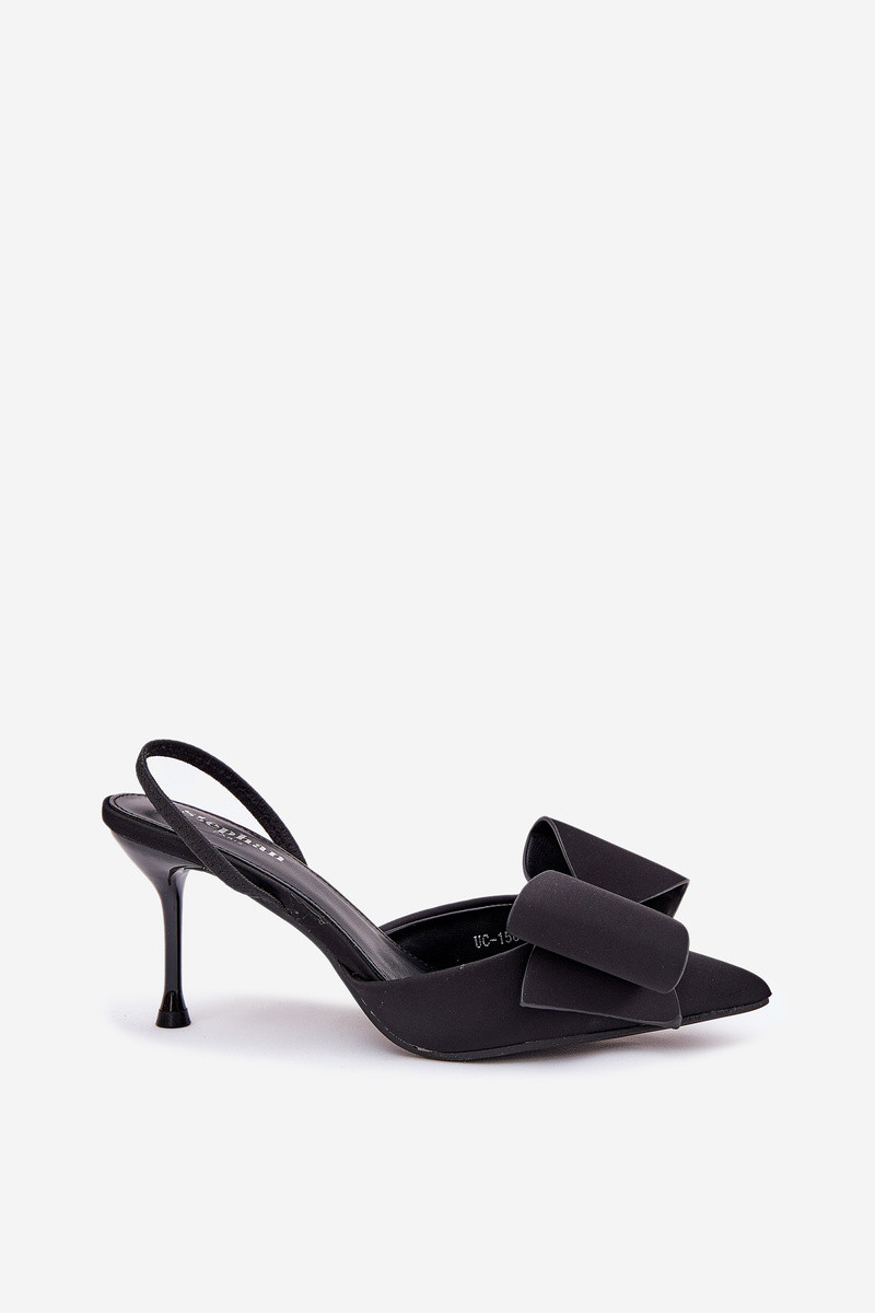Zwarte hoge hakken met open hiel en strik Eklevia