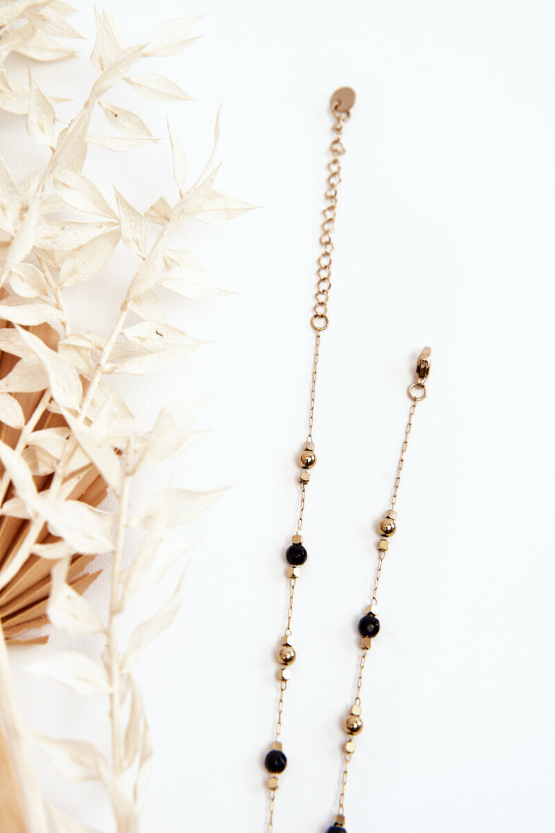 Dames ketting Met ZInarte Kralen gouden kleur