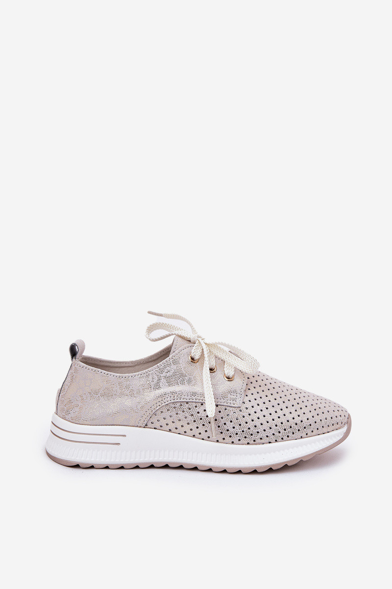 Dames sandkleurig-gouden leren schoenen met platform Artiker 56C2113