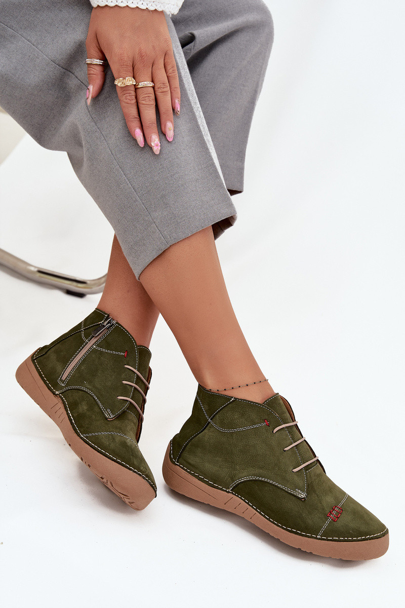Leren dames schoenen met naden, kasteeltype, Artiker 57C2119, groene kleur