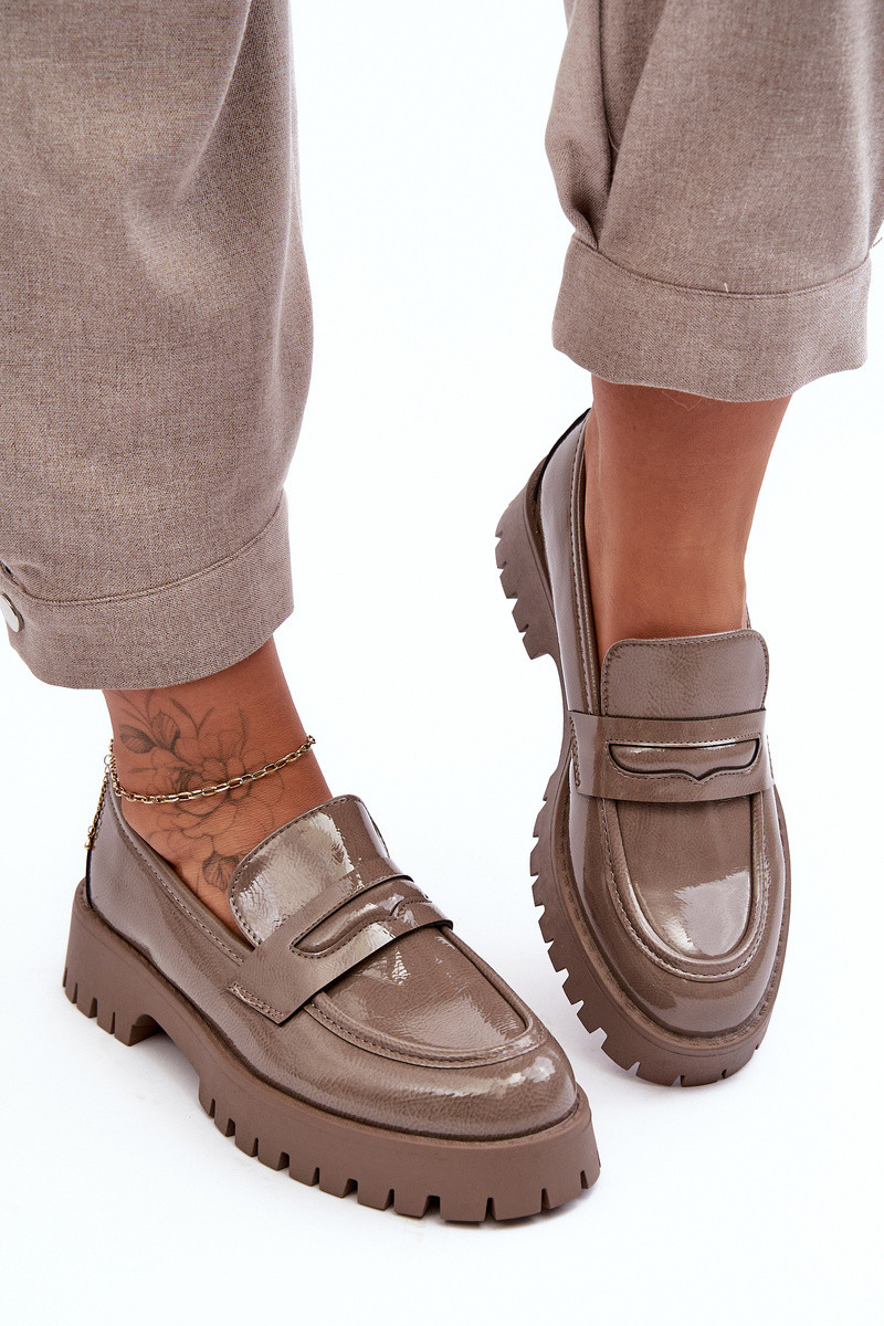 Schoenen met lak-effect mokassins met brede hakken in zandkleur „Jannah"