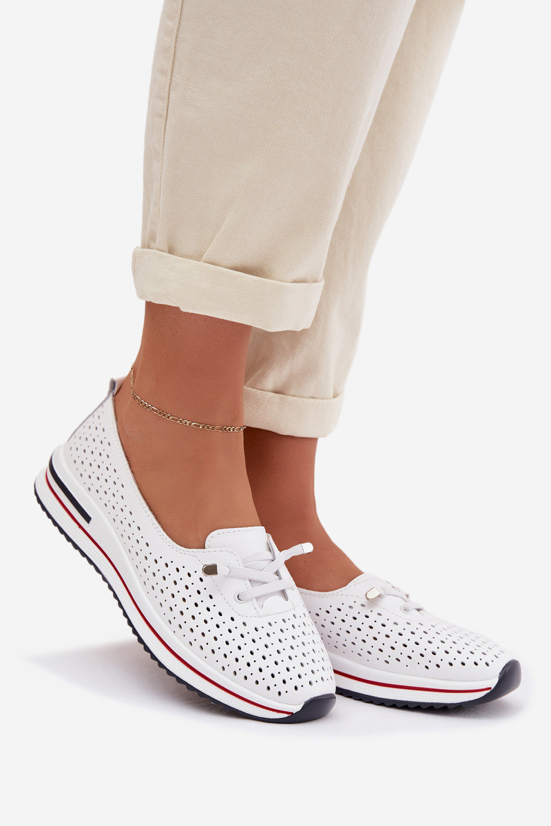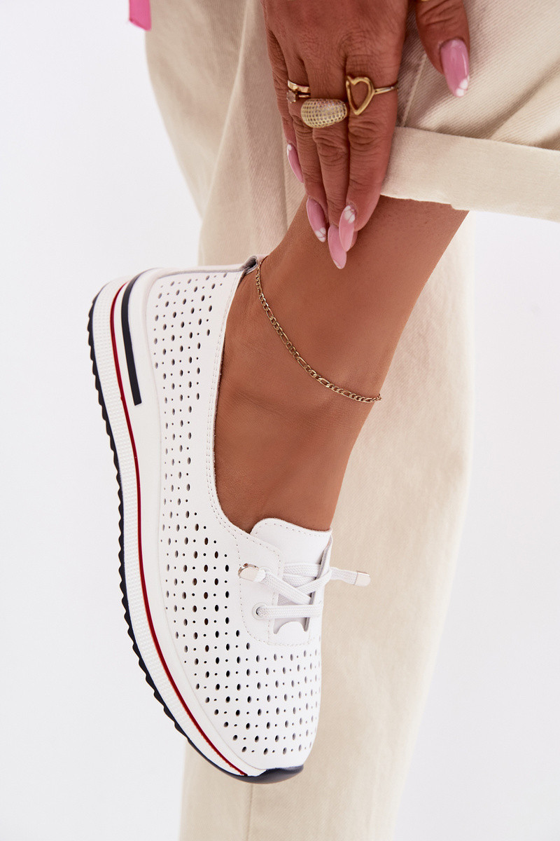 Dames schoenen van leer met gehaakte elementen S.Barski LR61-7044 witte kleur
