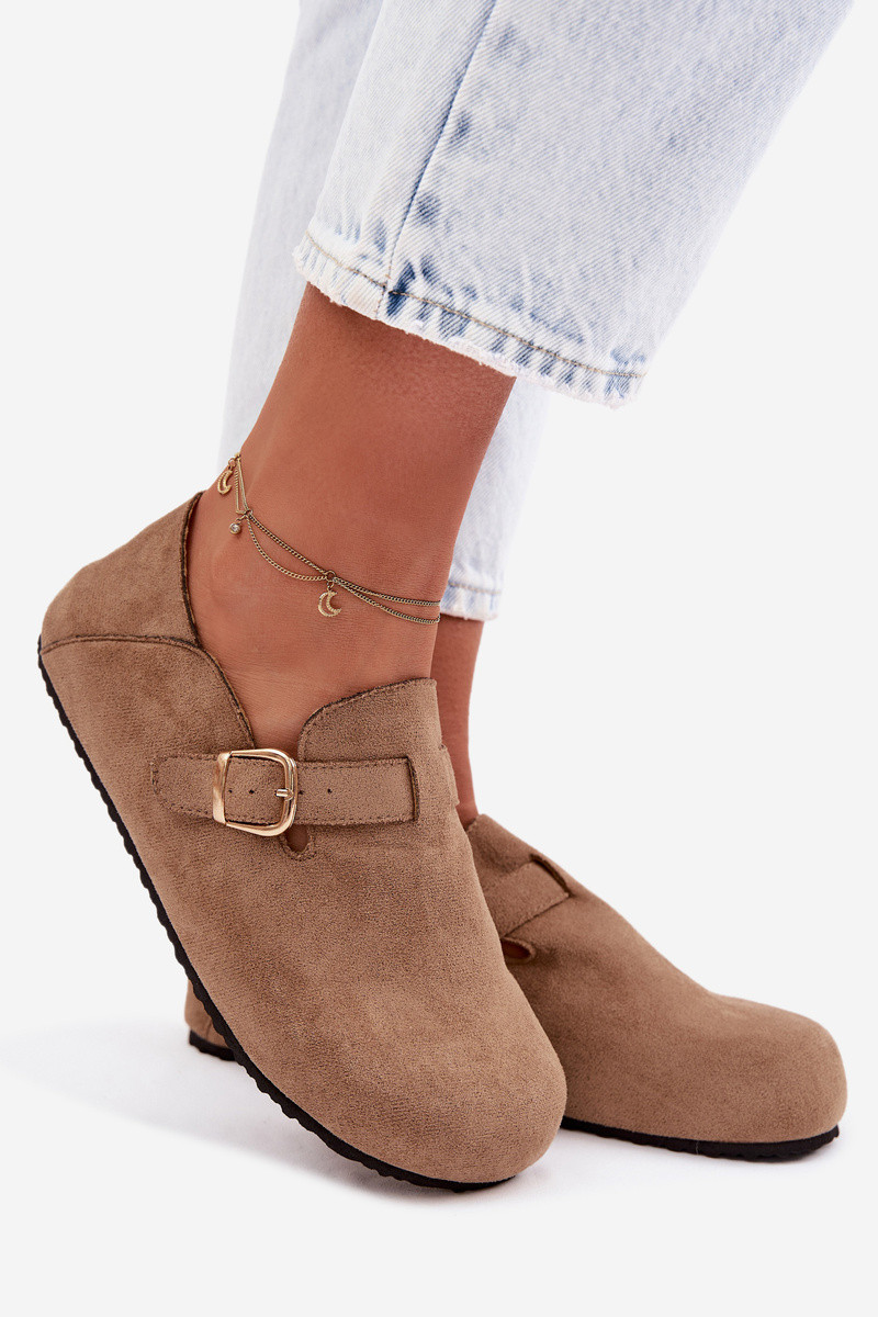 Dames slippers met gouden gespen, bruin