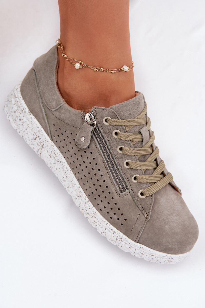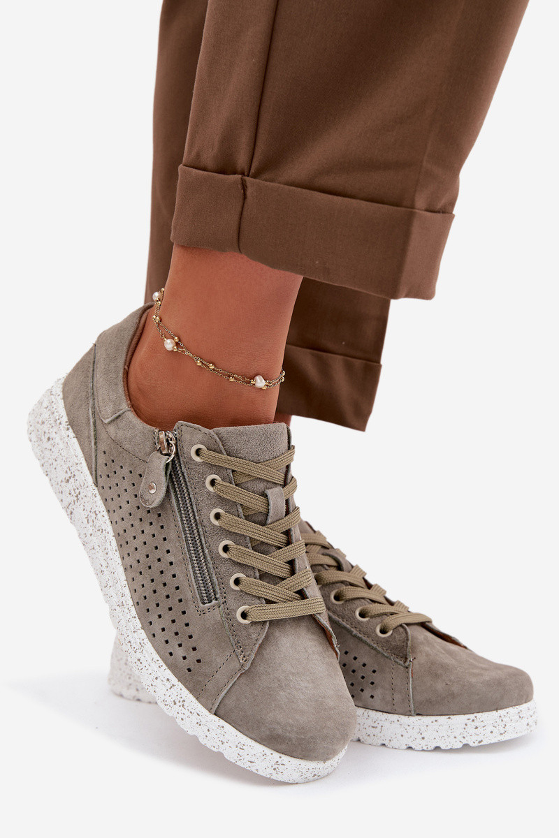 Dames suède schoenen met rits Cemela khaki kleur