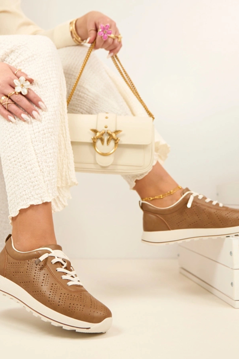 Lichtbruine geperforeerde instap sportieve schoenen SIone