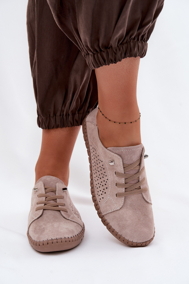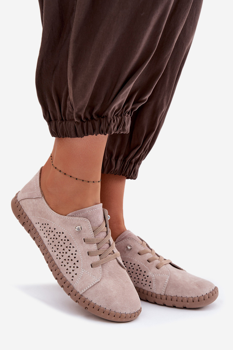 Vrouwen schoenen met opengewerkte elementen van natuurlijk suede in sandkleur Feliva