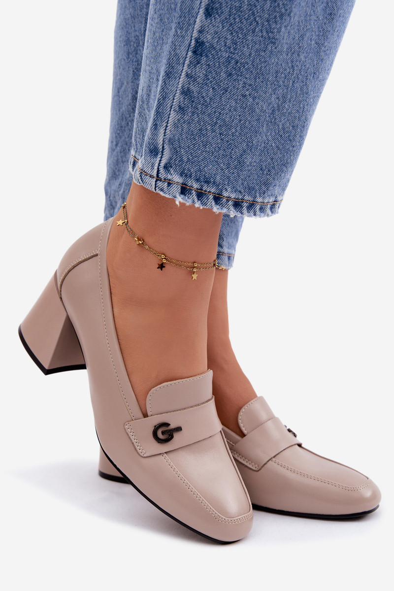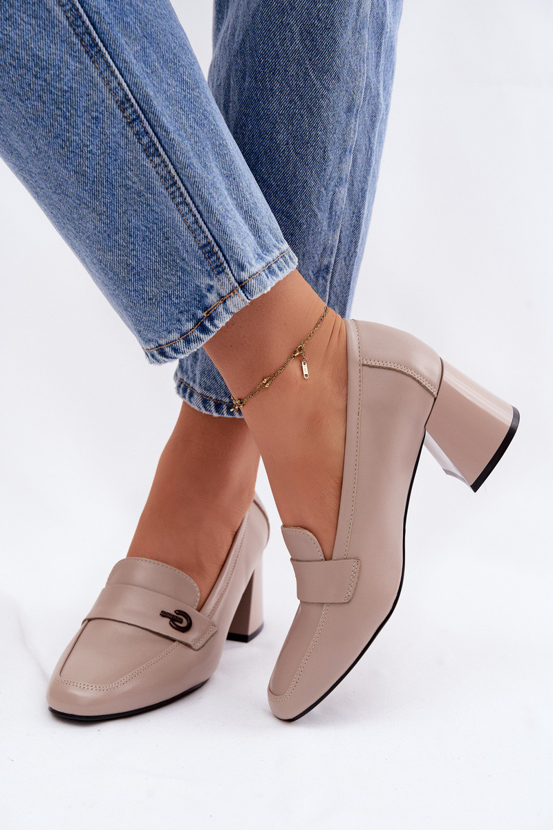 Vinceza 18119 leren dames schoenen met hak in zandkleur