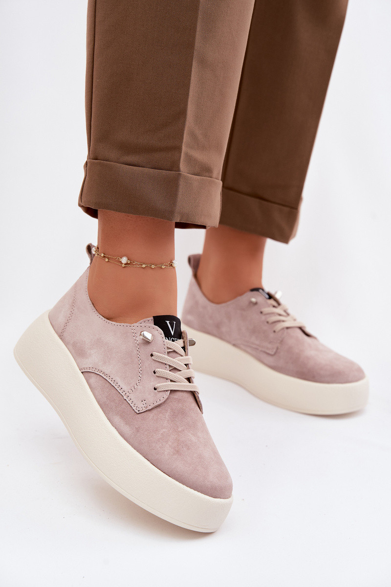 Suede dames schoenen met platform Vinceza 79605 zandkleurig
