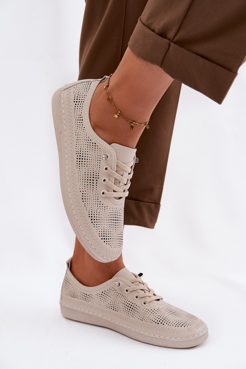 Dames leren schoenen met geperforeerde elementen S.Barski LR61-7083 zandkleur