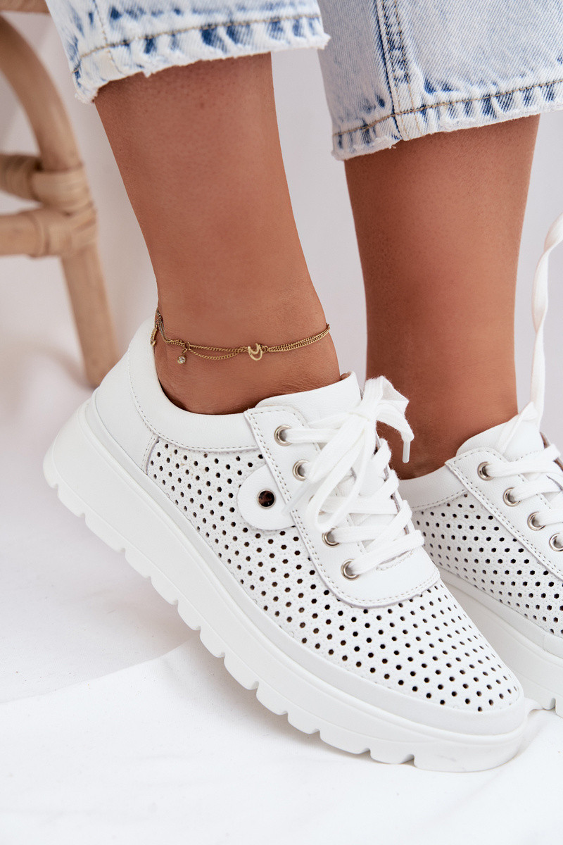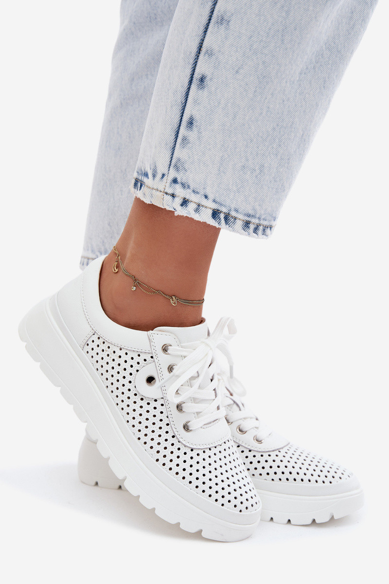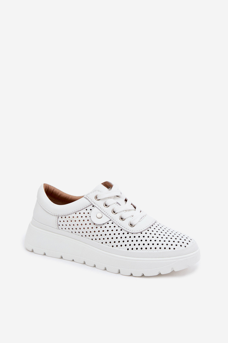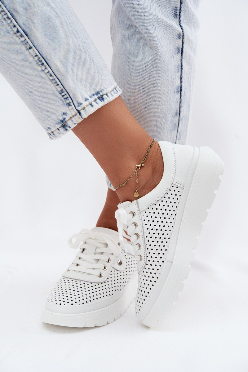 Witte geperforeerde leren schoenen voor dames Vinceza 79629