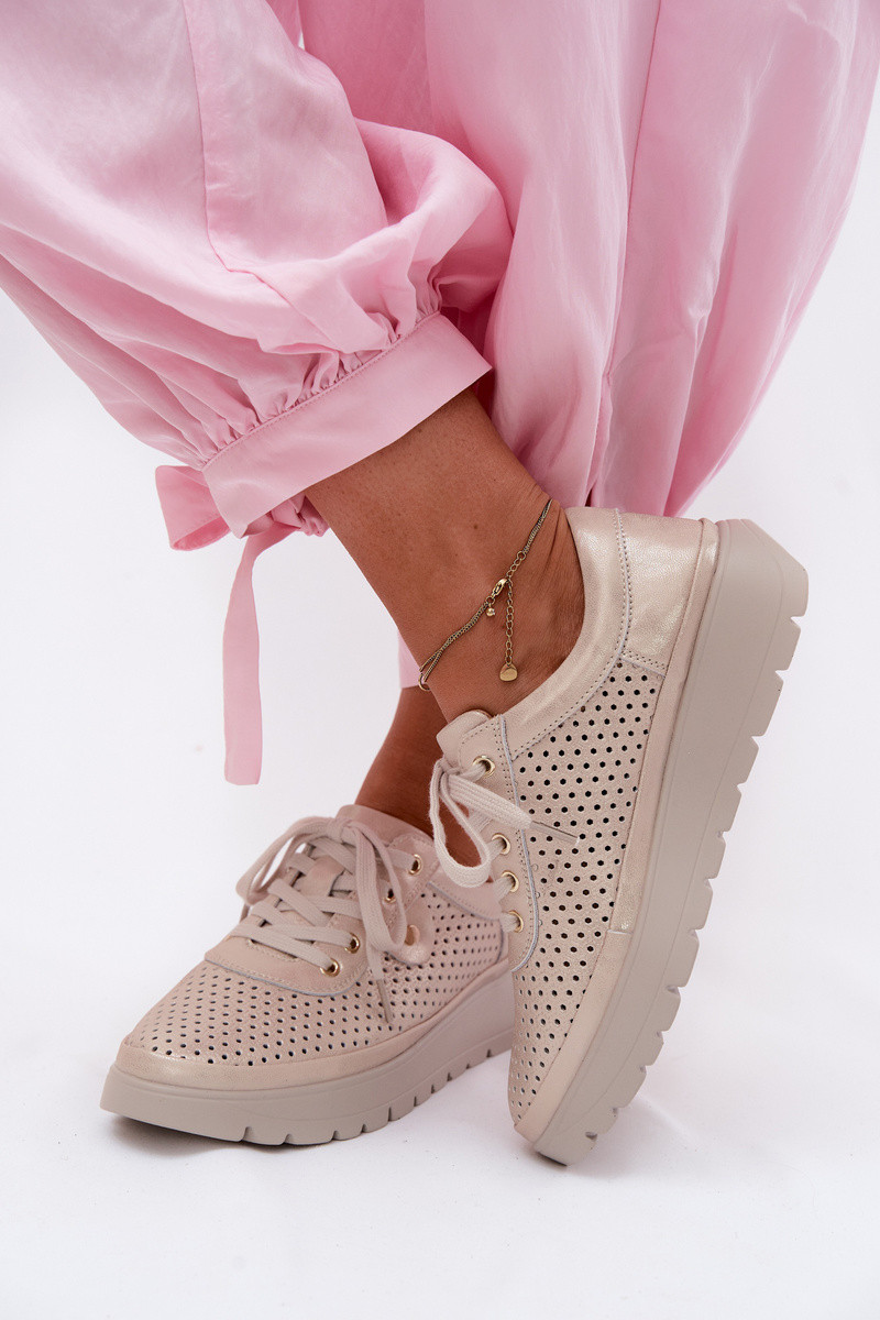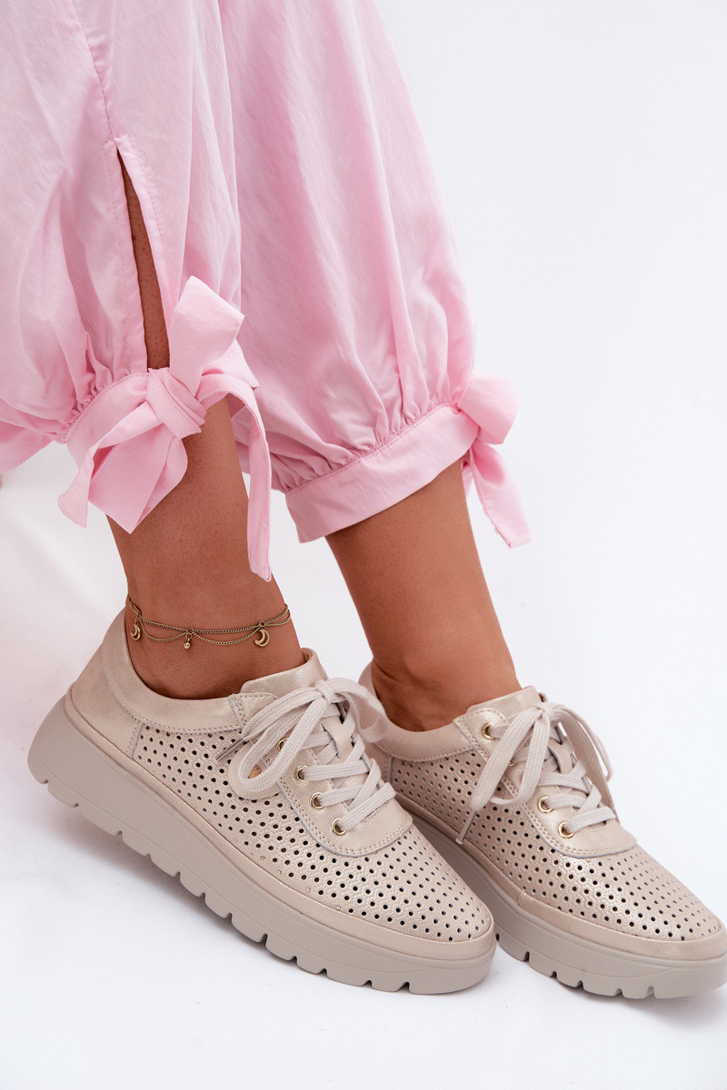 Gouden geperforeerde leren schoenen voor dames Vinceza 79629
