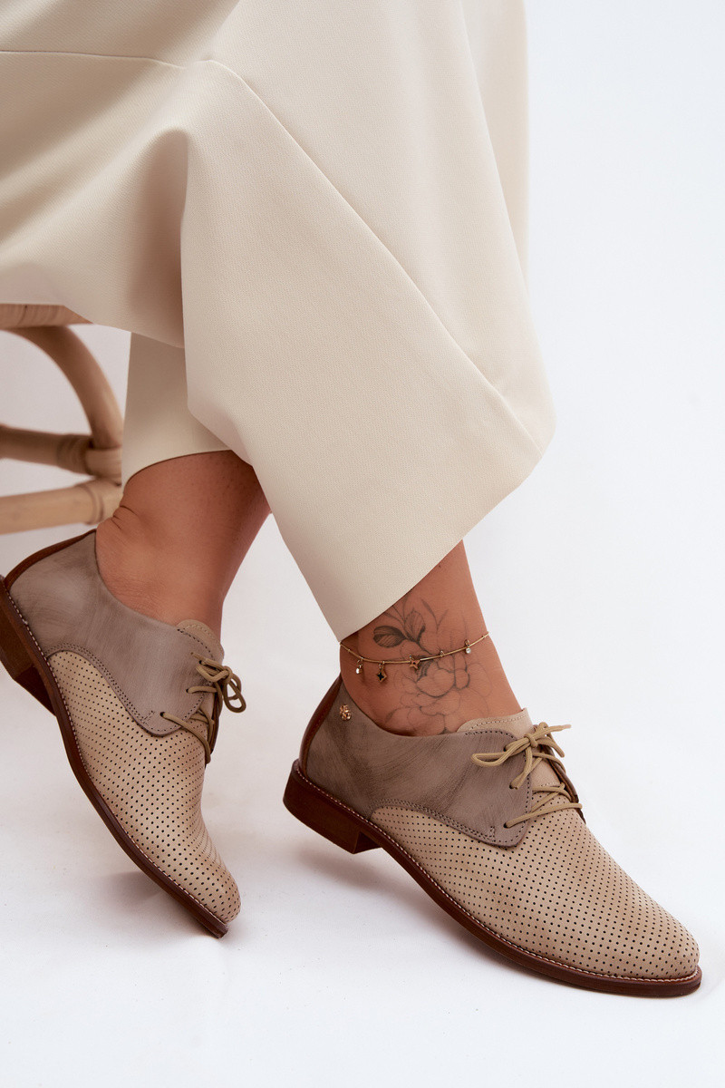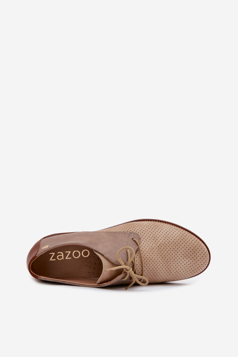Elegante zand- en bruine leren dameschoenen met veters Zazoo 4238