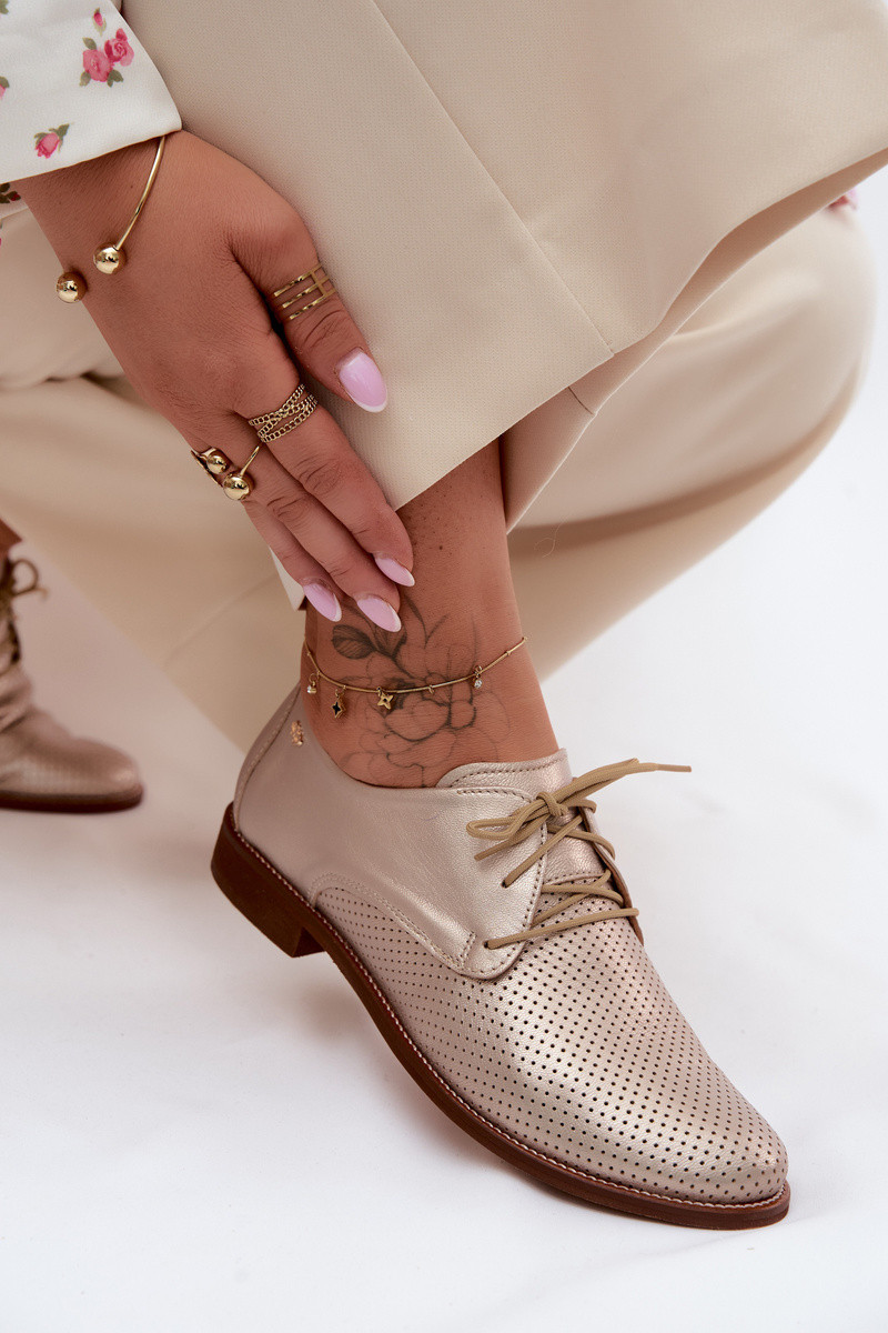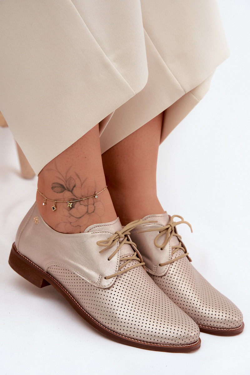 Elegante gouden leren dameschoenen met veters Zazoo 4238