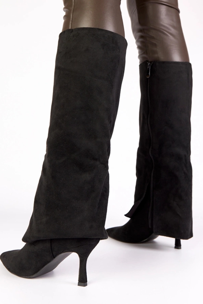 Zwarte lange laarzen op hoge hak van kunstsuède Beria