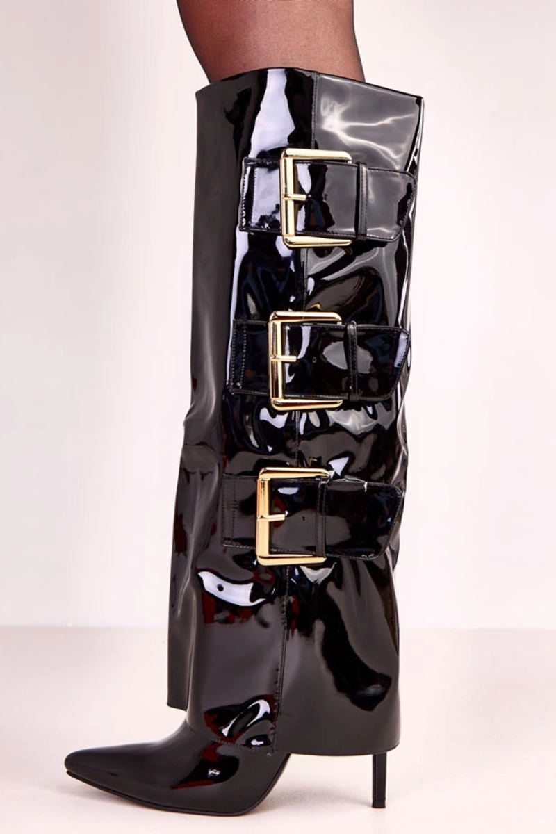 Zwarte lakleren laarzen met omgevouwen schacht Karela