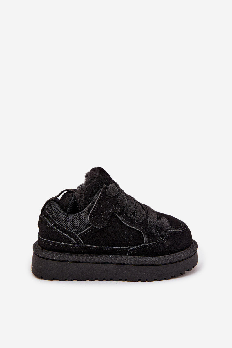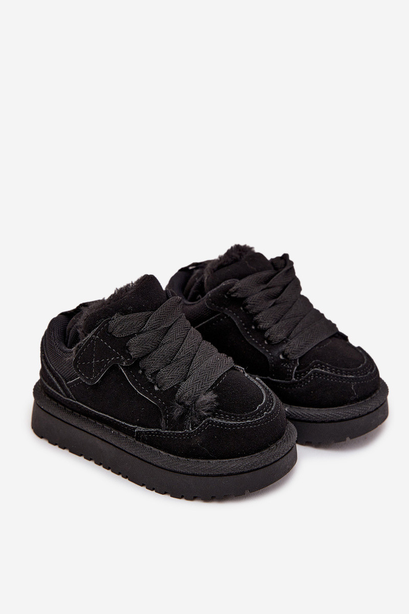 Zwarte warme kinder sneakers met voering van bont Mireen