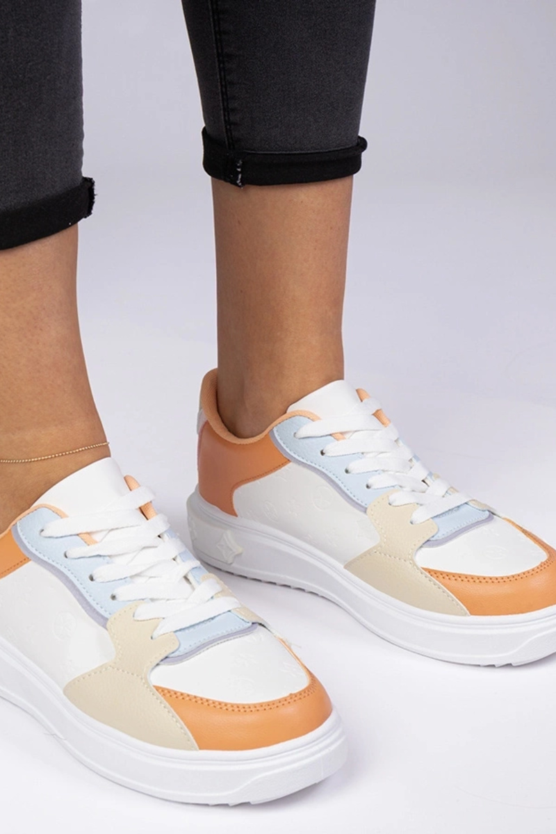 Wit-oranje sportschoenen van kunstleer Lavilia