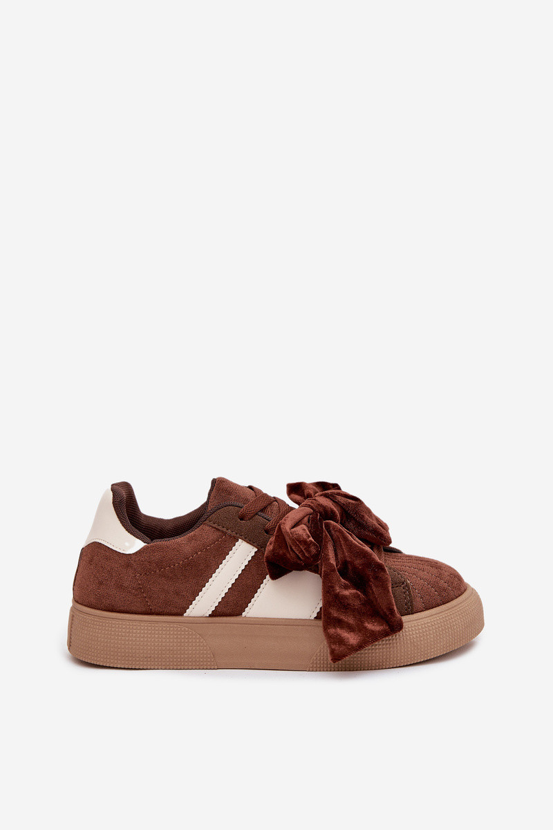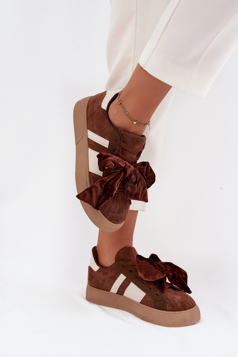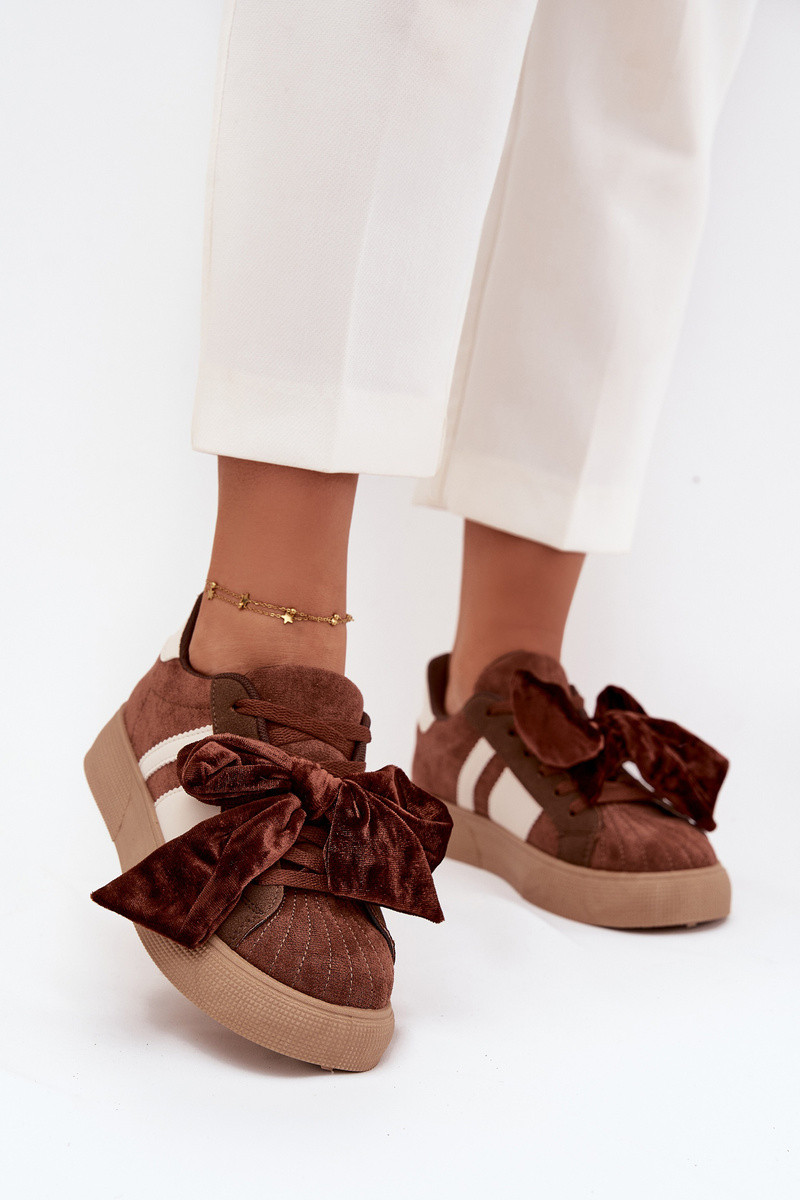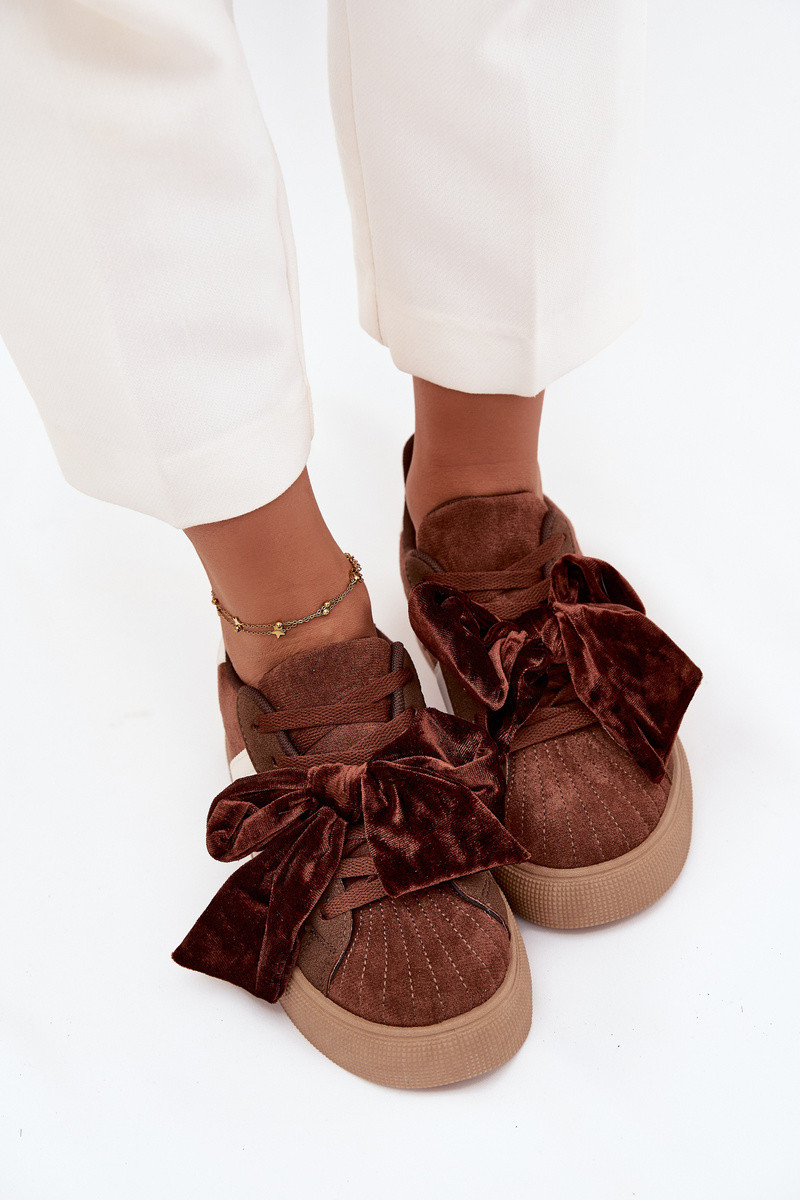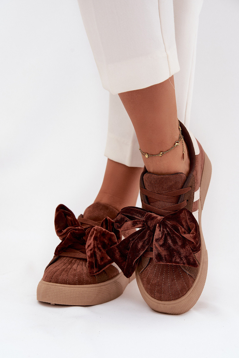 Dames sportieve schoenen met velours strik, bruin, Ashlyn