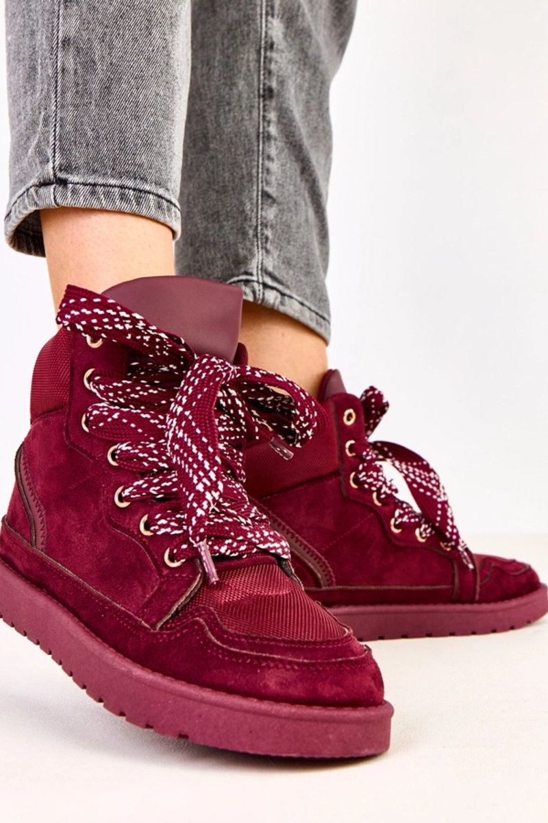 Kersenrode hoge sportieve schoenen met dikke veters Klevis