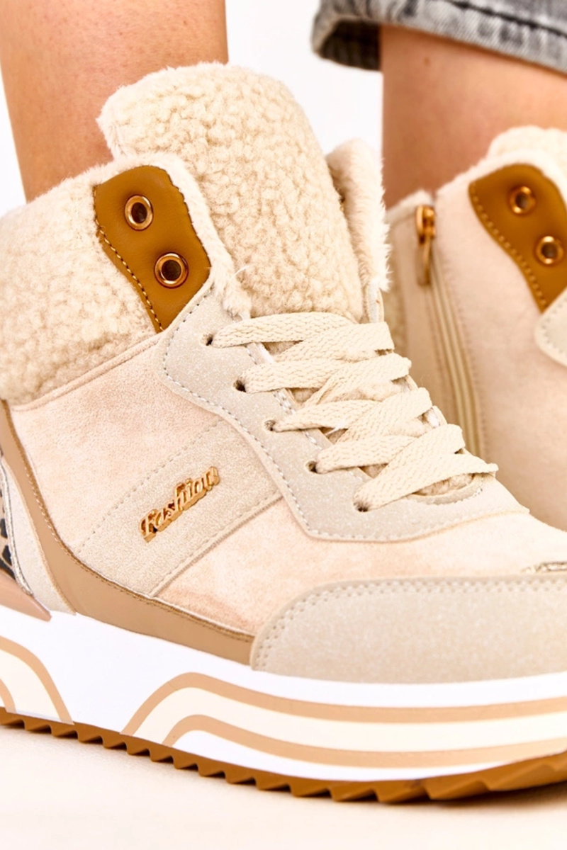 Zandkleurige hoge warme sportieve schoenen met bont Mirasen