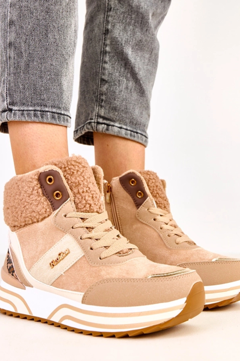 Donker zandkleurige hoge warme sportieve schoenen met bont Mirasen