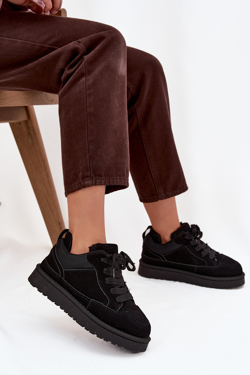 Zwarte warme dames sneakers met voering van bont Cyrissa