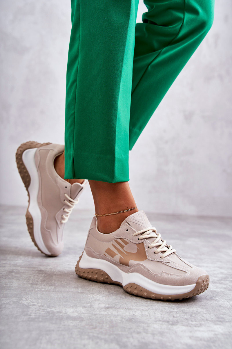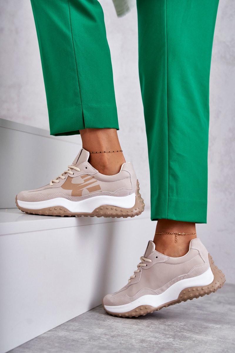 Dames sportschoenen met riemen beige Tolea