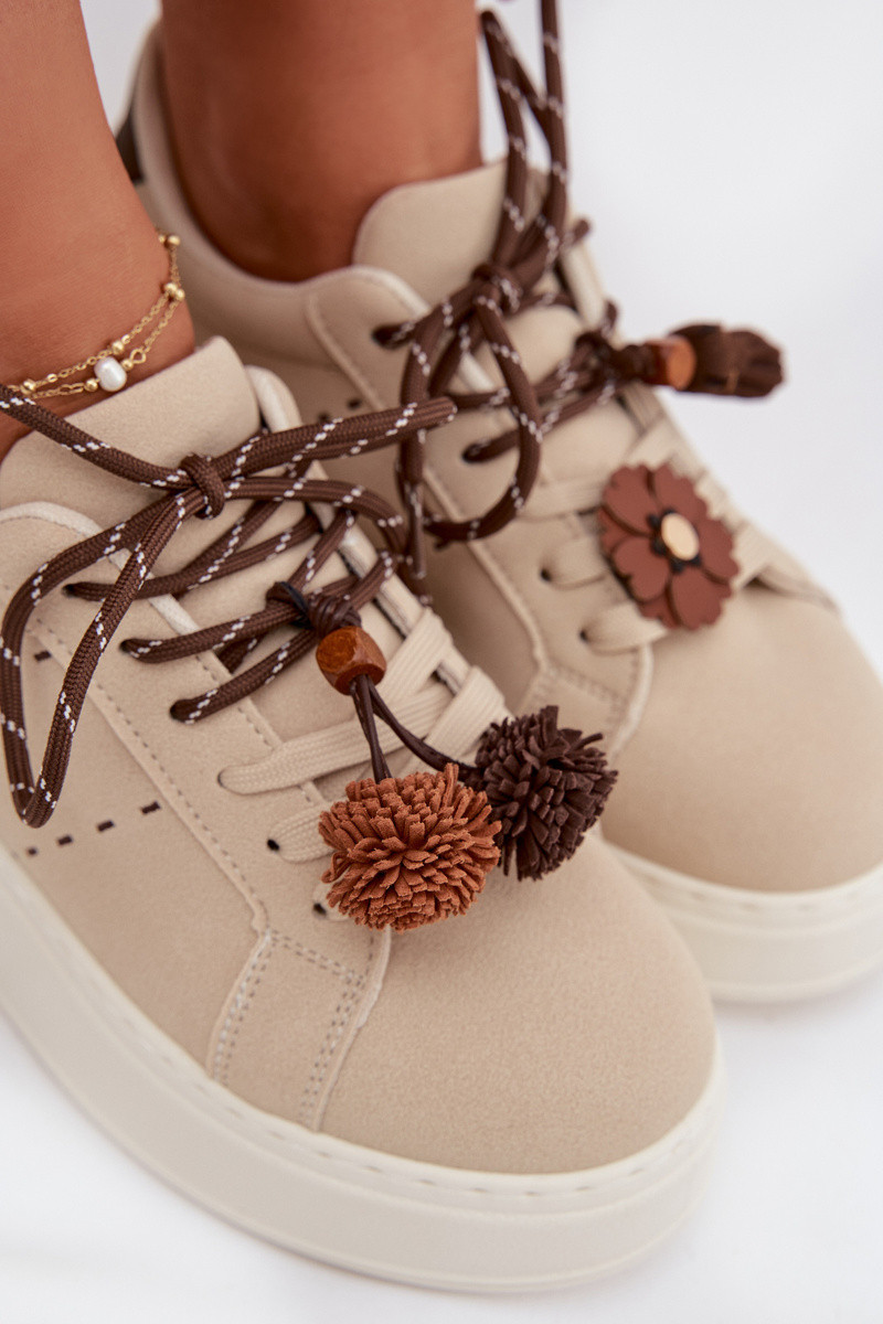 Zandkleurige Corinna dames platform sportschoenen met sierlijke pompons