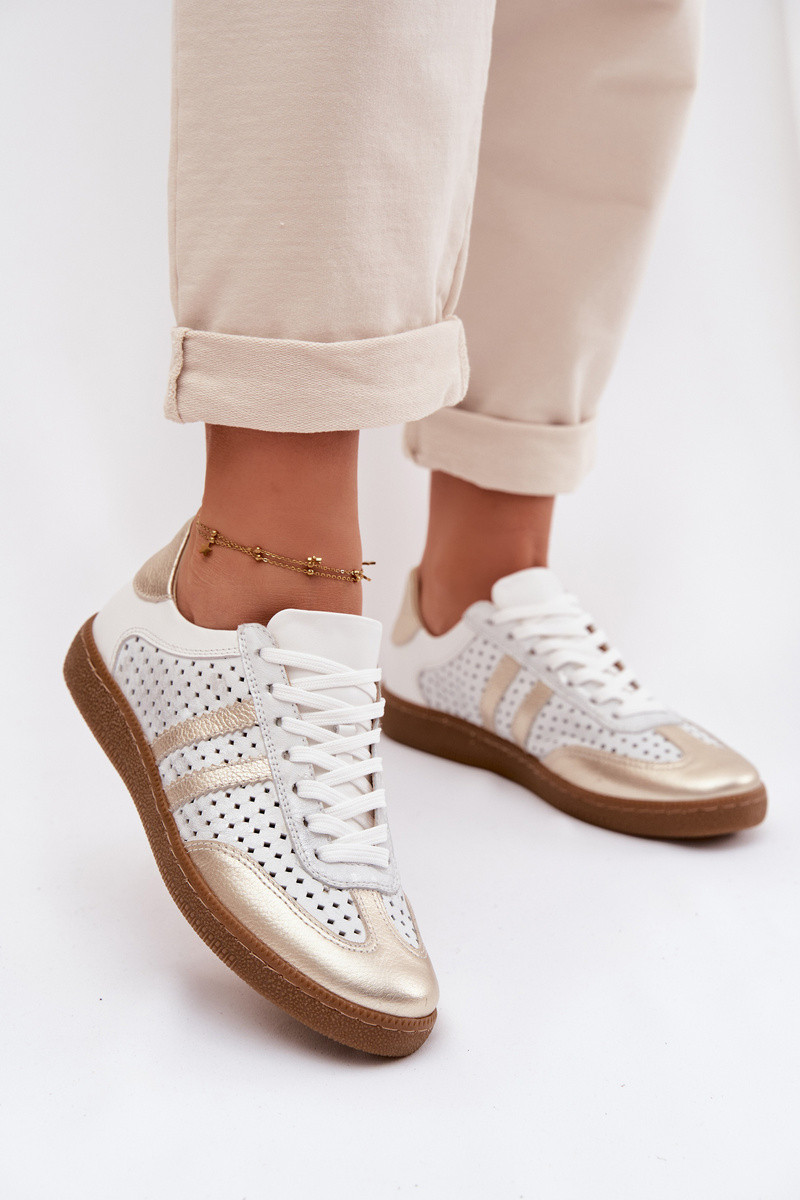 Zazoo N1318 kunstlederen sportschoenen met perforaties voor dames in grijs-goud