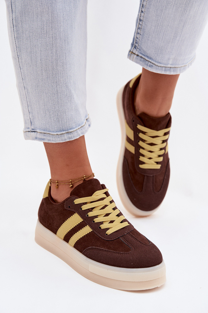 Dames sportieve schoenen met platform, chocolade kleur, Giselia