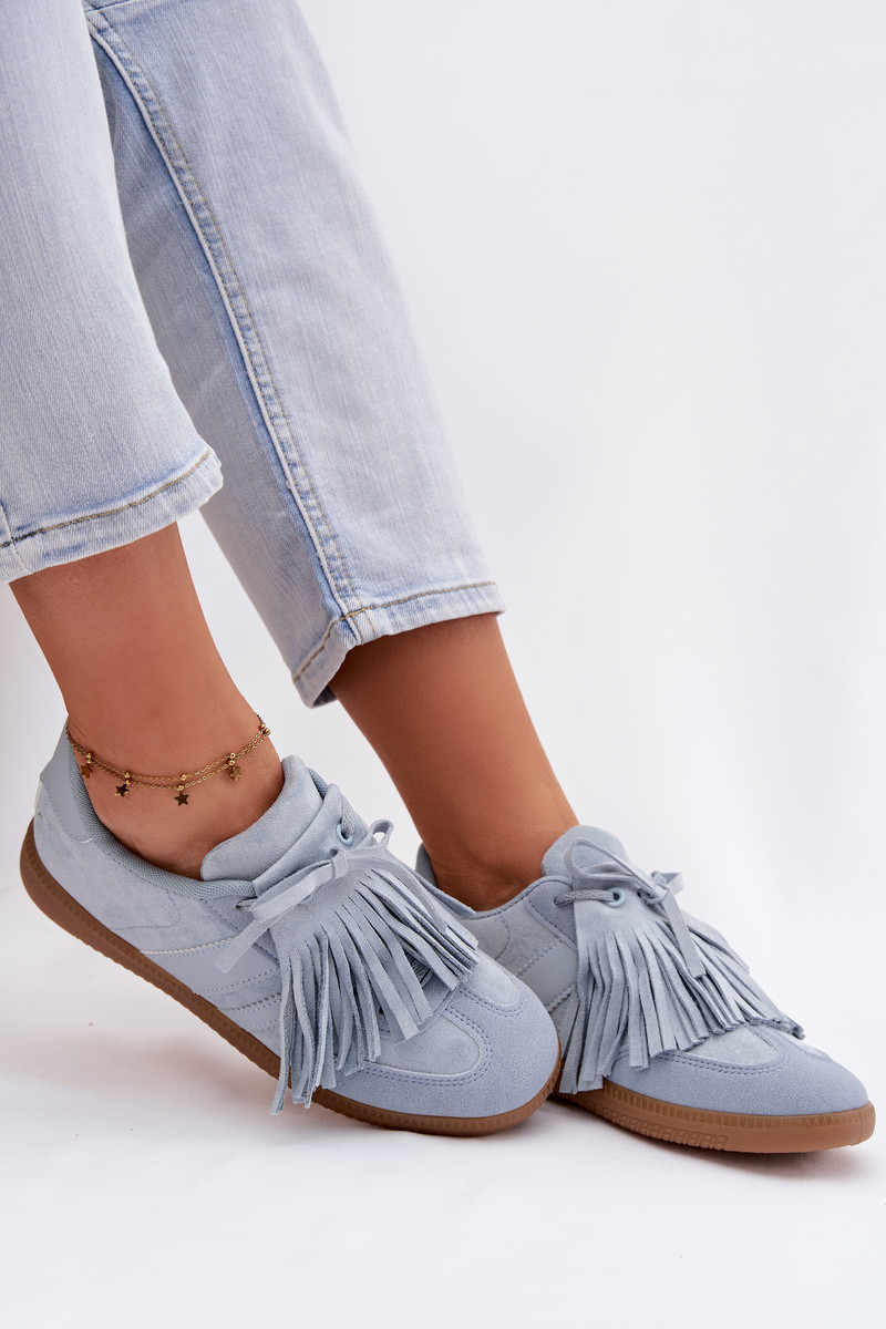 Dames sportieve schoenen met franjes, blauwe kleur, Dorivelle