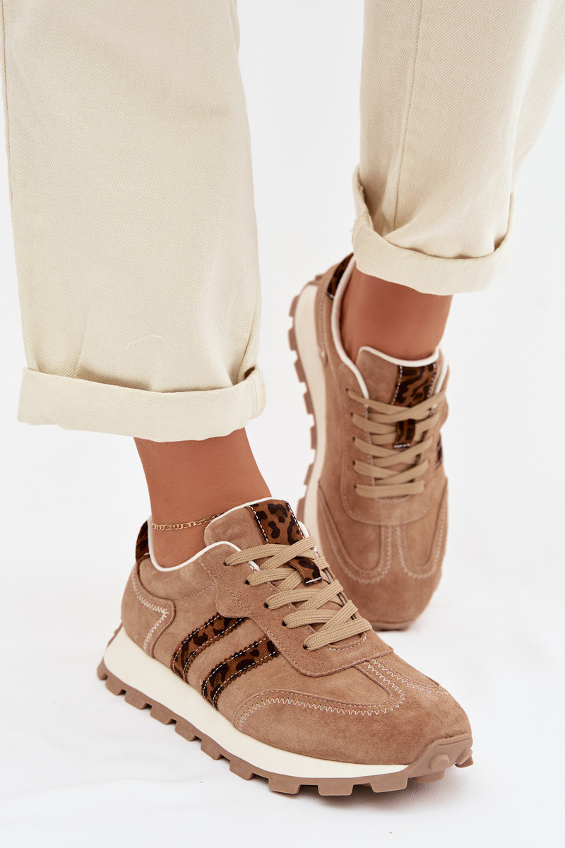 Dames suède sneakers met platform en luipaardprint S.Barski LR61-7071 in bruin