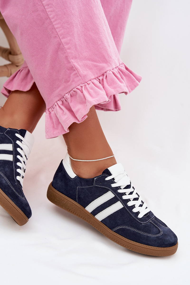 Dames lage sneakers Zazoo N1068 van suède in donkerblauwe kleur