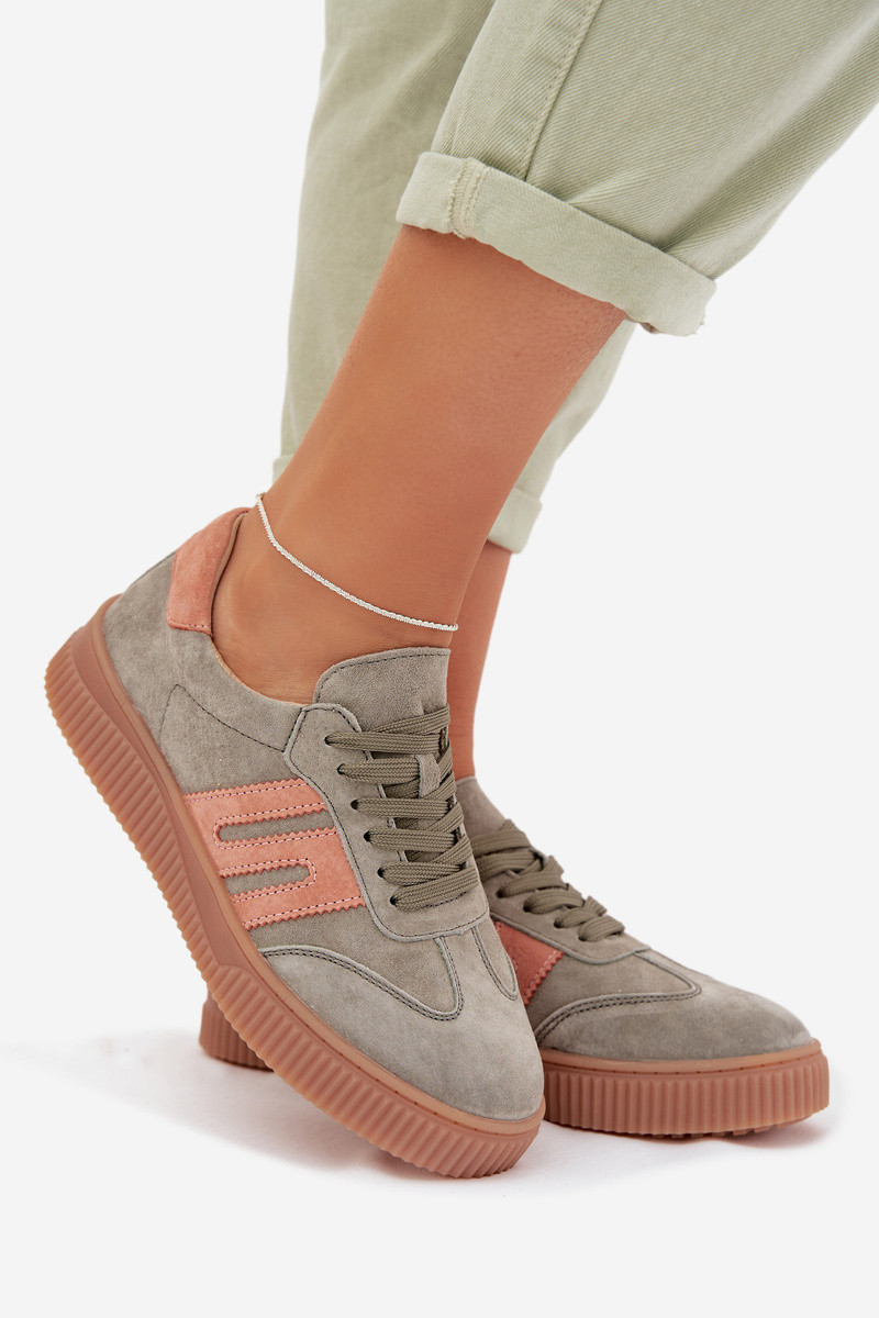 Dames sneakers in sportieve stijl van natuurlijk suède groen Delyssia