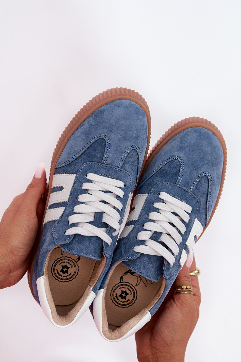 Blauwe damesschoenen van natuurlijk suede Delyssia